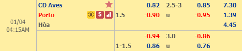 Cả 4 trận đấu vừa nêu Porto đều chỉ thắng với cách biệt tối thiểu dù trước giờ bóng lăn họ chấp rất sâu (thấp nhất là -1 1/2, cao nhất đến -2 1/4 theo kèo châu Á). Tất nhiên Porto toàn thua cả 4 trận này theo chỉ số sàn giao dịch. Chính bởi vậy, trong chuyến làm khách đến sân của Aves ở vòng 15, niềm tin dành cho Porto của giới đầu tư châu Á đang xuống rất thấp. Chiều 2/1, nhà cái đã đổi kèo chính cả trận từ 1 1/2:0 xuống mức 1 1/4:0.
