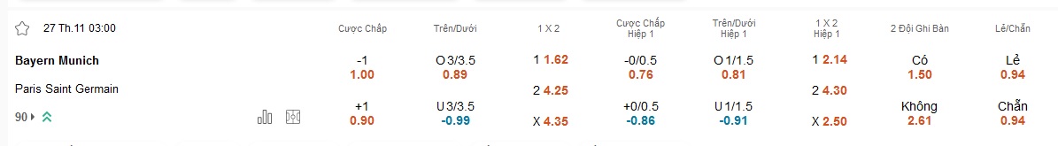 Trên sàn giao dịch châu Á lúc này chứng kiến nhà cái niêm yết tỷ lệ với mức Bayern Munich chấp 1 hòa cùng biên độ lợi nhuận cân bằng giữa các lựa chọn đối lập. Đây rõ ràng là kèo khá cao trong hoàn cảnh đội khách là cái tên lớn như PSG. Nhìn lại lần gần nhất tiếp đón nhà vô địch Pháp, Bayern Munich chấp 3/4 vào tháng 3 năm ngoái rõ ràng là chi tiết cho thấy đội bóng Đức đã nới rộng khoảng cách và có vị thế cao hơn đáng kể. Cần biết rằng, Hùm xám đã giành chiến thắng kèo châu Á tới 4 trong 6 trận gần nhất ở mọi giải đấu mà họ tham dự.