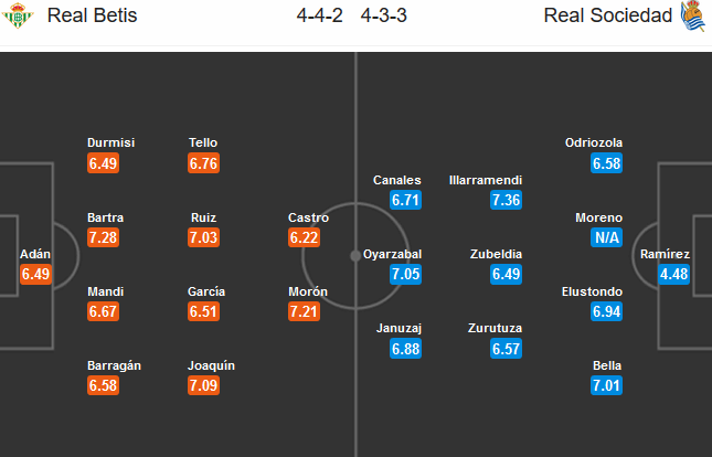 Nên nhớ, thầy trò HLV Sacristan đang cực kỳ hoang mang sau khi để đội bóng đến từ Áo là RedBull Salzburg loại ra khỏi sân chơi Europa League ở vòng playoff. Phong độ trên sân khách của họ cũng đang xuống dốc không phanh khi để thua liên tiếp cả 5 trận vừa qua, trong đó có 4 trận ở La Liga. Trái ngược với tình cảnh u ám của Sociedad, Betis đang có một mùa giải hết sức thành công.