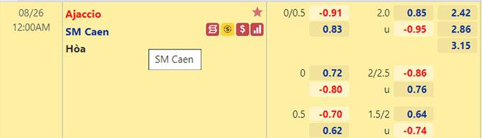 Bước vào trận đấu đêm nay, sàn giao dịch châu Á ghi nhận mức kèo Ajaccio chấp 0:1/4. Đây là tỷ lệ đã xuất hiện ở trận sân nhà gần nhất của họ, khi đánh bại Amiens 3-1. Ngoài ra, trận sân nhà gần nhất tiếp đón Auxerre mùa trước, Ajaccio cũng là đội giành chiến thắng. Trong bối cảnh Caen để thua 5/6 trận xa nhà gần đây, Ajaccio rõ ràng đang có cơ hội lớn tìm kiếm thắng lợi.