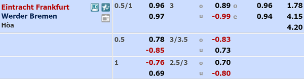 Tỷ lệ tổng bàn thắng của trận đấu này được niêm yết ở mốc 3 hòa với điểm ăn khá thấp cho cửa Over. Khả năng nổ tài là khá lớn bởi cả 8 màn chạm trán gần nhất giữa 2 đội đều kết thúc với ít nhất 3 bàn. Ở mùa giải này, Eintracht Frankfurt thể hiện khả năng phòng ngự không tốt khi để lọt lưới 9 bàn/5 trận. Khả năng 2 đội cùng ghi bàn là khá cao nên Tài là lựa chọn sáng giá.