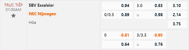 Tỷ lệ kèo Excelsior vs NEC. Nijmegen