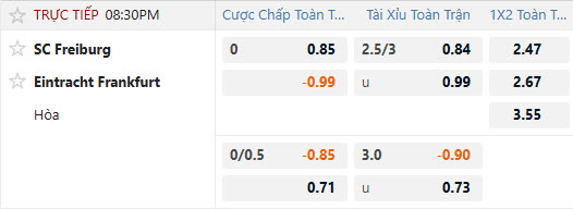 Tỷ lệ kèo Freiburg vs Frankfurt