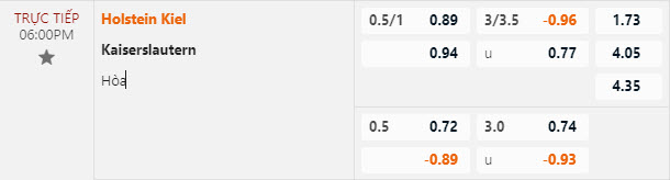 Tỷ lệ kèo Holstein Kiel vs Kaiserslautern