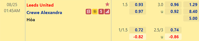 Lựa chọn tốt nhất: Leeds United -1 1/2 cả trận