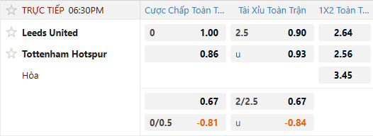 Leeds United không thua toàn bộ 3 trận sân nhà kể từ khi Premier League mùa hiện tại khởi tranh, lần lượt trước Everton (1-0), Newcastle (0-0) và Bournemouth (2-2). Trước một Tottenham có dấu hiệu mỏi mệt vì di chuyển liên tục, The Whites hứa hẹn sẽ có điểm vào thứ Bảy (4/10).