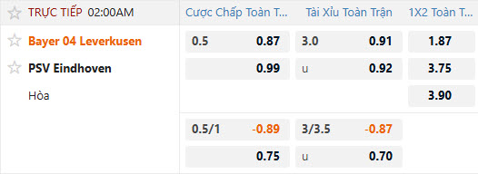 Tỷ lệ kèo Leverkusen vs PSV Eindhoven