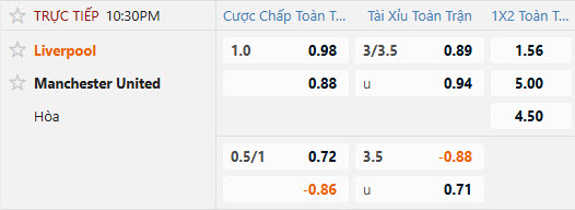 Giới chuyên gia đang đánh giá Liverpool là đội cửa trên với kèo chấp -1. Đó là mức kèo phản ánh khá chính xác tình hình thực tế khi The Kop đang đứng thứ hai, trong khi Man Utd chỉ xếp thứ mười và sa sút rõ rệt mỗi khi rời Old Trafford.