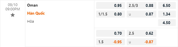 Tỷ lệ kèo Oman vs Hàn Quốc