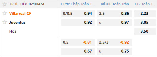 Giới chuyên gia đưa ra tỷ lệ châu Á 0:1/4, đồng nghĩa Villarreal dù có lợi thế sân nhà nhưng chỉ chấp nhẹ Juventus. Đây là mức kèo phản ánh sự cân bằng giữa hai đội. Villarreal thắng 6 trong 10 trận gần nhất và có phong độ sân nhà khá ấn tượng với 4 chiến thắng sau 5 trận. Họ cũng từng hạ gục Juventus ở Turin trong quá khứ. Tuy nhiên, cần lưu ý rằng Villarreal đã thua 2 trong 5 trận gần đây, bao gồm thất bại trước Tottenham ngay trong trận mở màn Champions League. Điều đó cho thấy khi đối mặt với đối thủ có đẳng cấp cao, họ chưa thực sự chắc chắn.