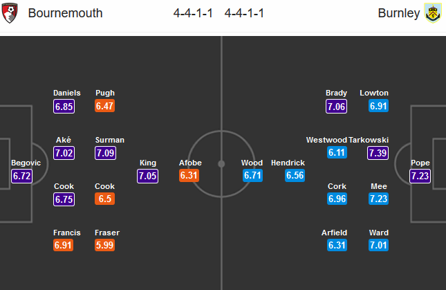 Khả năng phòng ngự xuất sắc với liên tiếp 3 trận gần đây đều giữ sạch lưới và chỉ thua những đối thủ lớn như Chelsea hay Tottenham với tỷ số tối thiểu mang lại cho Bournemouth những kết quả rất đáng khen ngợi nói trên. Trong khi đó, Burnley tất nhiên để lại khá nhiều dấu ấn kể từ đầu mùa, nhưng điều này lại khiến đội khách trở nên áp lực hơn qua từng trận đấu. Thậm chí việc đến làm khách trước đối thủ được coi là vừa tầm như Bournemouth cũng khiến Burnley chịu sức ép… phải thắng. Nhưng thực tế đây không phải đối thủ dễ chơi cho Burnley khi họ chỉ thắng được 1 trận trong 4 lần gặp nhau gần nhất.