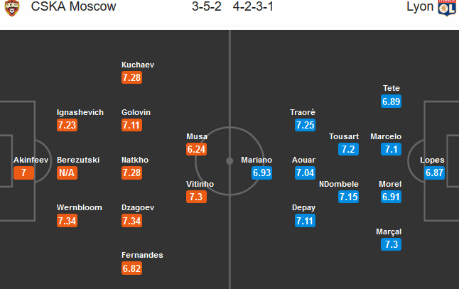 Đây là thời điểm rất nhạy cảm của CSKA Moscow. Đại diện của bóng đá Nga đang trong cuộc chiến hết sức căng thẳng ở giải quốc nội khi phải cạnh tranh vị trí thứ 2 với 3 cái tên khác. Nhưng họ cũng đã làm rất tốt nhiệm vụ gây áp lực cho Krasnodar và hiện chỉ còn kém đội xếp thứ 2 chỉ 1 điểm. Trở lại đấu trường Europa League, có vẻ như thầy trò HLV Goncharenko đã có những bước chuẩn bị rất tốt trước đại chiến với Lyon.