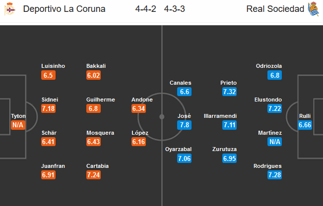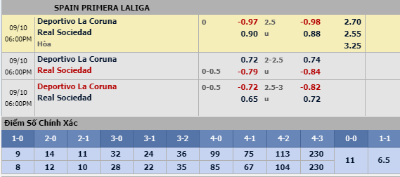 - Trong lần gần nhất có tỷ lệ châu Á chính 0:0 khi đến làm khách trên sân Riazor, Sociedad đã có chiến thắng với tỷ số 1-0.