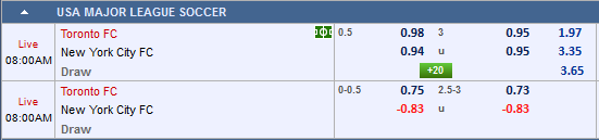 Dẫu vậy, các nhà cái lại không thực sự tin tưởng vào FC Toronto khi dù họ đang có phong độ tốt như vậy mà lại chỉ được niêm yết tỷ lệ chấp 1/4 trước New York City. Cũng chính tỷ lệ này, lượt đi mùa giải trước, cũng trên sân đấu này, FC Toronto đã thất bại 2-3 trước đối thủ.