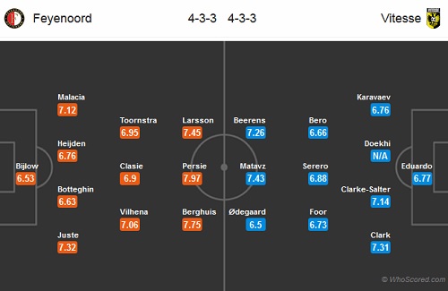Mùa này, Feyenoord đã khởi đầu thành công khi đánh bại PSV để giành danh hiệu siêu cúp Hà Lan. Nó đã tạo ra cảm hứng tốt, giúp thầy trò Van Bronckhorst giành 13 điểm sau 6 vòng đấu đầu tiên. Với số điểm này, họ đang xếp thứ 3 trên BXH. Ở loạt trận vòng 7 đêm nay, Feyenoord đối mặt thử thách không dễ dàng là Vitesse, đội bóng mới chỉ để thua duy nhất 1 trận ở mùa giải này.
