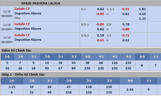 Nói qua lần gặp nhau gần nhất diễn ra chỉ mới cách đây chưa đầy 1 tháng để thấy rằng tương quan không thực sự nghiêng về Getafe. Thậm chí giới điều khiển thị trường châu Á đang có điều chỉnh về tỷ lệ theo chiều hướng giảm với đại diện thành Madrid. Nếu như trận đối đầu sân nhà tại Cúp Nhà Vua chứng kiến Getafe chấp 3/4 thì đến trận đấu tại sân chơi chính La Liga chỉ có kèo chính Getafe chấp 1/2.