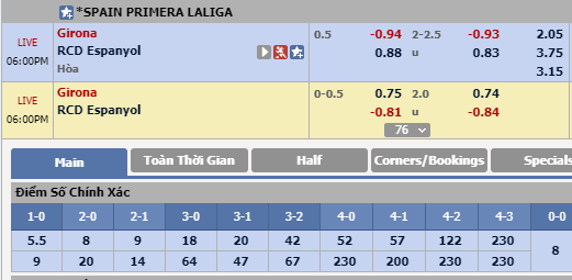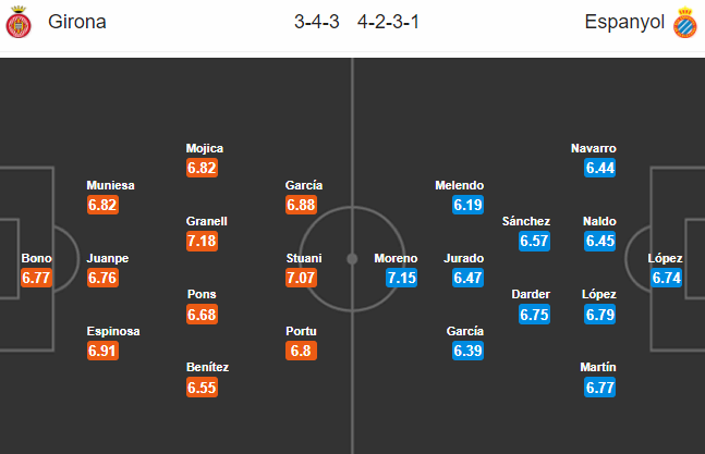 - Trong 5 trận đối đầu gần nhất, Girona thắng 3 và Espanyol thắng 2 trận.