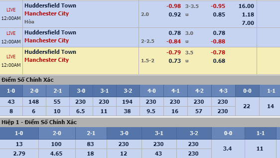 Rất nhiều giới mộ điệu đặt niềm tin vào Huddersfield để hy vọng chứng kiến diễn biến hấp dẫn hơn là màn tra tấn dễ dàng của Man City. Tuy nhiên, quá khó để hy vọng đội chủ nhà sẽ có kết quả tích cực trên thị trường châu Á chứ chưa nói đến tỷ số về chuyên môn. Bởi đơn giản, khoảng cách giữa 2 đội lúc này quá lớn. Man City đã có nhiều hơn gấp đôi số điểm mà Huddersfield đang sở hữu. Mọi chỉ số chuyên môn kèm theo cũng chênh lệch quá lớn nghiêng về đội khách.