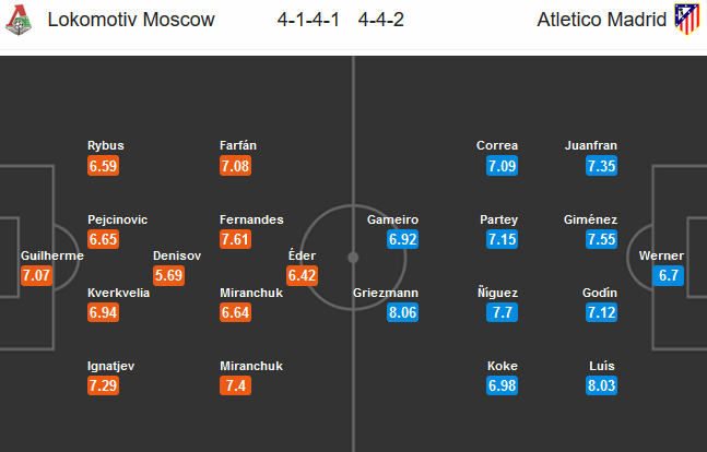 Atletico Madrid đã chứng tỏ sự vượt trội khi đánh bại Lokomotiv Moscow với tỷ số 3-0 ở trận lượt đi trên đất Tây Ban Nha. Với sự năng nổ của Diego Costa kết hợp với độ tinh quái của Griezmann trên hàng công, HLV Simeone từ thực dụng đã rất thành công trong việc biến Atletico thành một đội bóng có lối chơi pressing đầy hoa mĩ và hiệu quả.