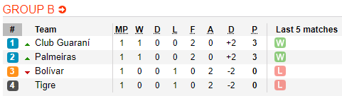 Ở trận ra quân, Palmeiras không gặp nhiều khó khăn với chiến thắng dễ dàng ngay trên đất Argentina trước Tigre. Trận thắng đó đưa họ lên vị trí đầu bảng, bằng điểm và bằng hiệu số với đối thủ Guarani. Trở về sân nhà để đón tiếp chính Guarani trong ngày hôm nay, Palmeiras được giới cầm cân nảy mực đánh giá rất cao với kèo chấp 1 3/4.
