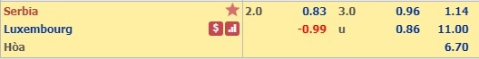 Trong vòng 1 năm gần đây, Serbia có 2 lần nhường khách từ 2 bàn trở lên, đều trước Lithuania (0:2 1/4 và 0:2 3/4). Kết quả, dù không phải trận nào cũng thuận buồm xuôi gió, nhưng đoàn quân của HLV Tumbaković đều thắng chung cuộc 4-1, tức cách biệt 3 bàn. Phía đối diện, Luxembourg đang có mạch 5 trận toàn bại, riêng 2 trận gần nhất lần lượt với tỷ số 0-3 (Bồ Đào Nha) và 0-4 (Đan Mạch). Ở hoàn cảnh đó, nên chọn phe chủ nhà.