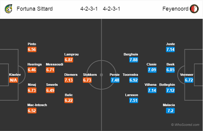 Bên kia chiến tuyến, cũng giống như Sittard, Feyenoord đã không còn động lực ở mùa giải năm nay khi với 62 điểm đang có sau 33 vòng đấu cùng vị trí thứ 3 trên BXH, đội bóng này đã chắc 1 vé dự vòng sơ loại Europa League mùa sau. Xét trong bối cảnh như vậy, yếu tố quyết tâm của thầy trò HLV van Bronckhorst cũng bị nghi ngờ ở trận đấu tới đây.
