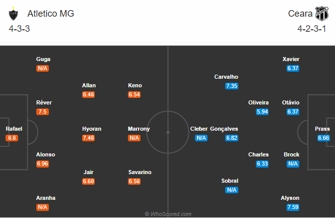 Xa hơn, 11 trận trước đó tính trên mọi đấu trường, Atletico Mineiro bất bại với 8 chiến thắng và 3 trận hòa. Mùa giải trước khi đối đầu Ceara, Atletico Mineiro toàn thắng với tỷ số 2-1. Sau 2 trận ở mùa giải này, Ceara mới giành được 1 điểm (hòa trên sân nhà và thua trên sân khách).