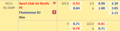 Hai lần tiếp đón Fluminense gần đây trên sân nhà, Sport Recife đều chấp -1/2 theo kèo châu Á. Vì vậy khi nhà cái chỉ để kèo handicap trận đấu sắp tới ở mức 0:1/4, giới đầu tư sớm cảm nhận thấy dấu hiệu kém an toàn ở lựa chọn chủ nhà.