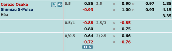 Tỷ lệ tổng bàn thắng của trận đấu này được niêm yết ở mốc 2 1/2. Giới chuyên môn đánh giá cao khả năng nổ tài bởi sau 2 vòng đấu, Shimizu S-Pulse đều ghi bàn nhưng lại nhận tới 5 bàn thua. Còn với sự hưng phấn, Cerezo Osaka có lý do để chơi tấn công ở trận đấu chiều nay. Đó là cơ sở để giới đầu tư châu Á kì vọng kịch bản tưng bừng bàn thắng.