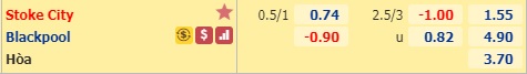 Ở trận đấu diễn ra vào tối nay, Stoke được nhà cái đánh giá cao hơn Blackpool, thể hiện qua việc sẽ xuất phát với mức kèo 0:3/4. Đây là điều dễ hiểu, bởi ngoài ưu thế về mặt sân bãi và thành tích đối đầu, giữa 2 đội vào lúc này là một khoảng cách không hề nhỏ về đẳng cấp.
