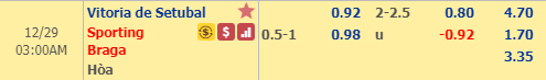 Còn Vitoria Setubal, đội bóng này phong độ đang rất kém, toàn thua 4 trận liên tiếp gần đây. Vitoria Setubal cần một cú hích để trở lại và họ phải thi đấu nghiêm túc ngay cả ở một trận cầu thủ tục. Vượt trội về mọi mặt mà Braga chỉ chấp -3/4 theo tỷ lệ kèo châu Á, chỉ thông tin này cũng đủ để người hâm mộ cảm nhận rằng cửa trên không phải lựa chọn an toàn.