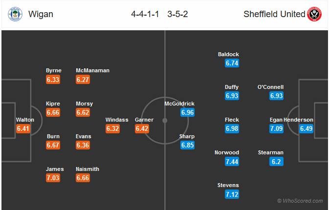 + Wigan thắng 4, hòa 3 và thua 2/9 trận đối đầu gần đây với Sheffield Utd