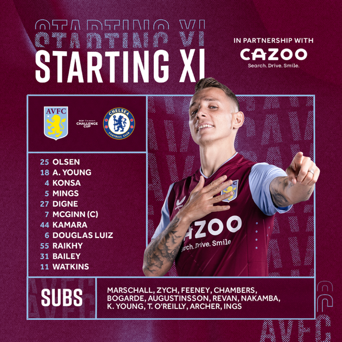 Aston Villa: Olsen; Young, Konsa, Mings, Digne; McGinn, Kamara, Luiz; Bailey, Ings, Watkins