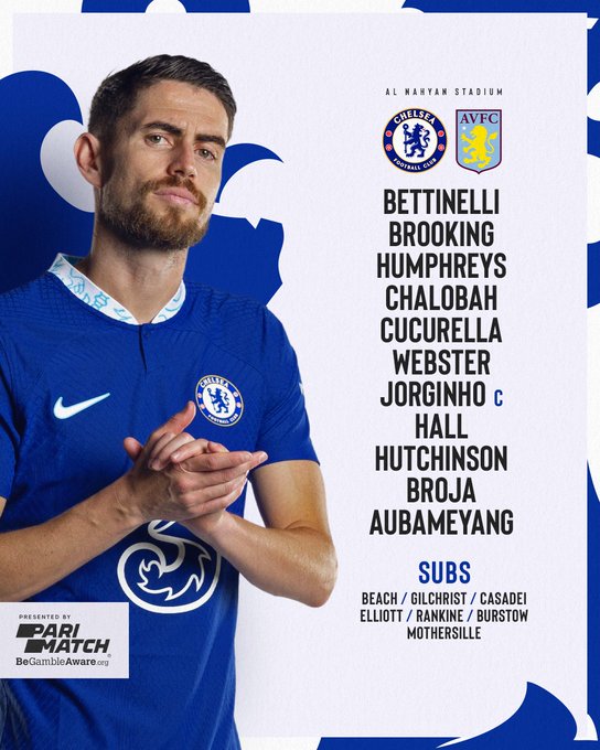 Chelsea: Kepa; Rankine, Chalobah, Humphreys, Cucurella; Jorginho, Chukwuemeka, Casadei; Hutchinson, Broja, Aubameyang