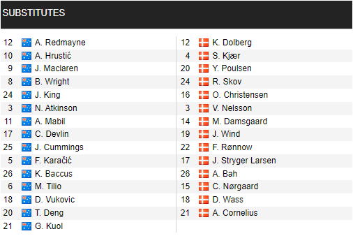 * Danh sách dự bị trận Australia vs Đan Mạch, 22h00 ngày 30/11: World Cup 2022