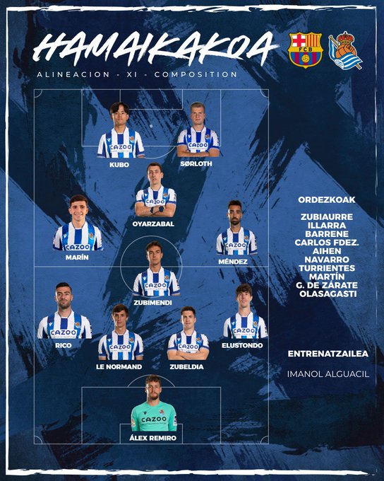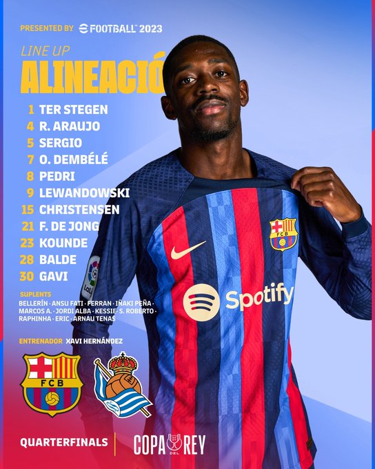 AEGoal cập nhật chính xác ĐỘI HÌNH RA SÂN trận Barcelona vs Sociedad diễn ra lúc 03h00 ngày 26/01/2023 trong khuôn khổ Cúp Nhà Vua TBN.