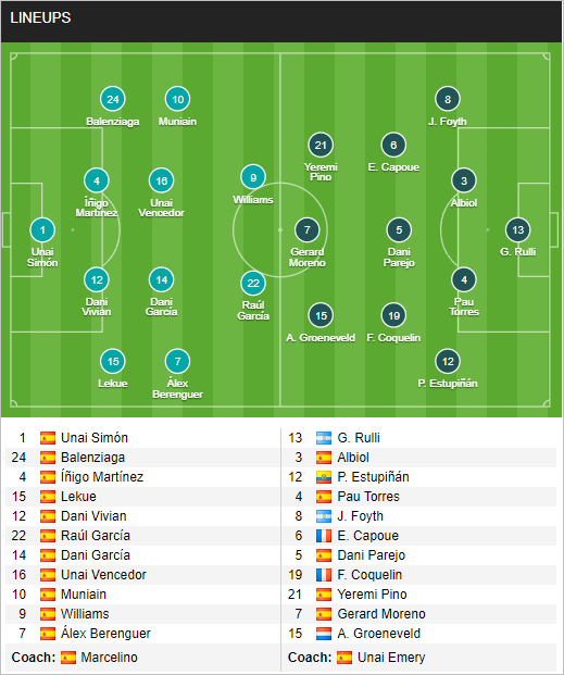 ĐỘI HÌNH RA SÂN trận Bilbao vs Villarreal, 02h00 ngày 24/10: VĐQG Tây Ban Nha