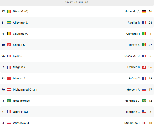 Monaco: Nubel; Vanderson, Disasi, Maripan, Henrique; Fofana, Magassa; Ben Seghir, Golovin; Embolo, Ben Yedder..