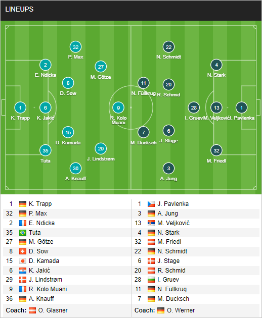 Eintracht Frankfurt: Marcel Wenig, Eric Ebimbe chấn thương, khả năng ra sân cả Jesper Lindstrom còn bỏ ngỏ.
