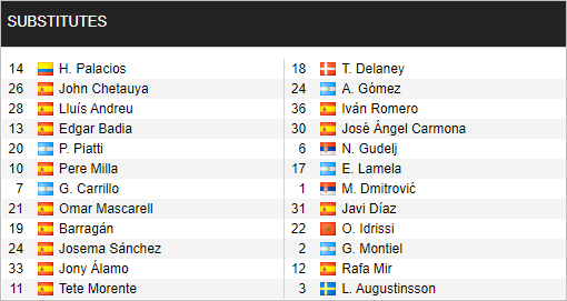 AEGoal cập nhật chính xác ĐỘI HÌNH RA SÂN trận Elche vs Sevilla diễn ra lúc 00h30 ngày 29/8 trong khuôn khổ Vòng 3 - VĐQG Tây Ban Nha.