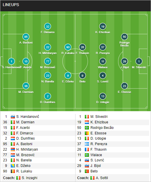 AEGoal cập nhật chính xác ĐỘI HÌNH RA SÂN trận Inter Milan vs Udinese diễn ra lúc 02h45 ngày 19/02/2023 trong khuôn khổ giải VĐQG Italia.