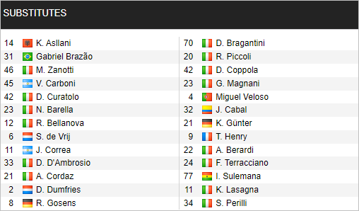 * Danh sách dự bị trận Inter Milan vs Verona (02h45 ngày 15/1)