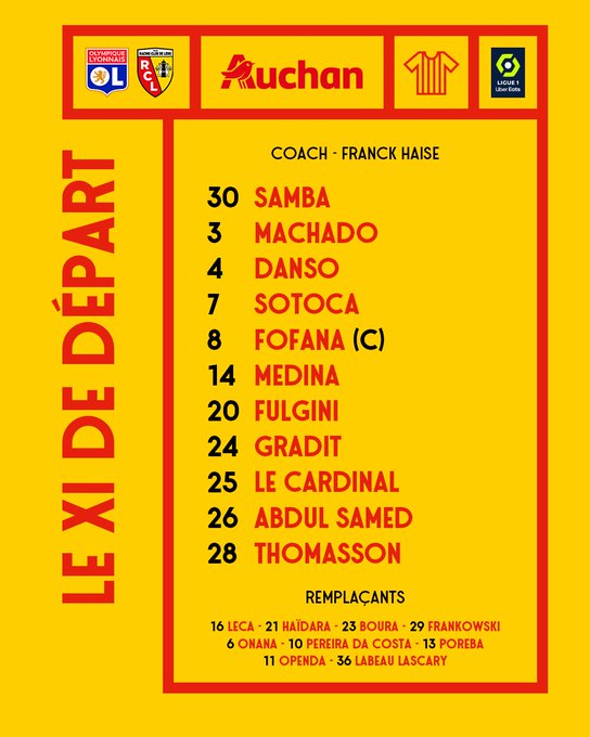 Lens: Samba; Tốt, Danso, Medina; Frankowski, Abdul Samed, Fofana, Machado; Sotoca, Thomasson, Openda
