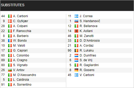 * Danh sách dự bị trận Monza vs Inter Milan (02h45 ngày 08/01)