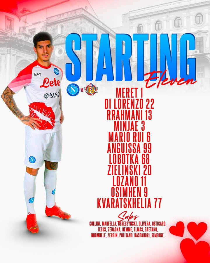 AEGoal cập nhật chính xác ĐỘI HÌNH RA SÂN trận Napoli vs Cremonese diễn ra lúc 02h45 ngày 13/2 trong khuôn khổ giải VĐQG Italia.