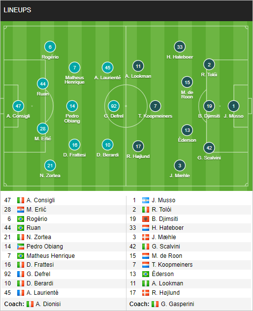 ĐỘI HÌNH RA SÂN trận Sassuolo vs Atalanta, 02h45 ngày 05/02: VĐQG Italia