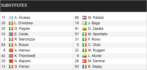 * Danh sách dự bị trận Sassuolo vs Atalanta (02h45 ngày 05/2)