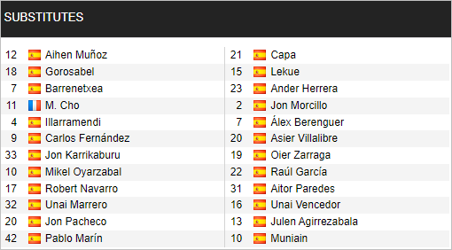 Bilbao: Simon; De Marcos, Vivian, Alvarez, Berchiche; D Garcia, Zarraga; I Williams, Sancet, N Williams; Guruzeta
