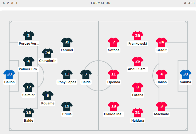 Lens: Samba; Gradit, Danso, Medina; Frankowski, Abdul Samed, Fofana, Haidara; Costa; Said, Openda.