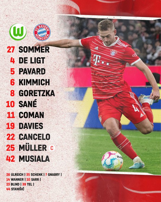 Bayern: Sommer; Cancelo, Upamecano, De Ligt, Davies; Kimmich, Goretzka; Sane, Musiala, Coman; Choupo-Moting